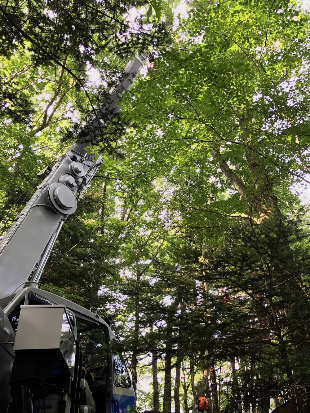 クレーンを使用した伐採