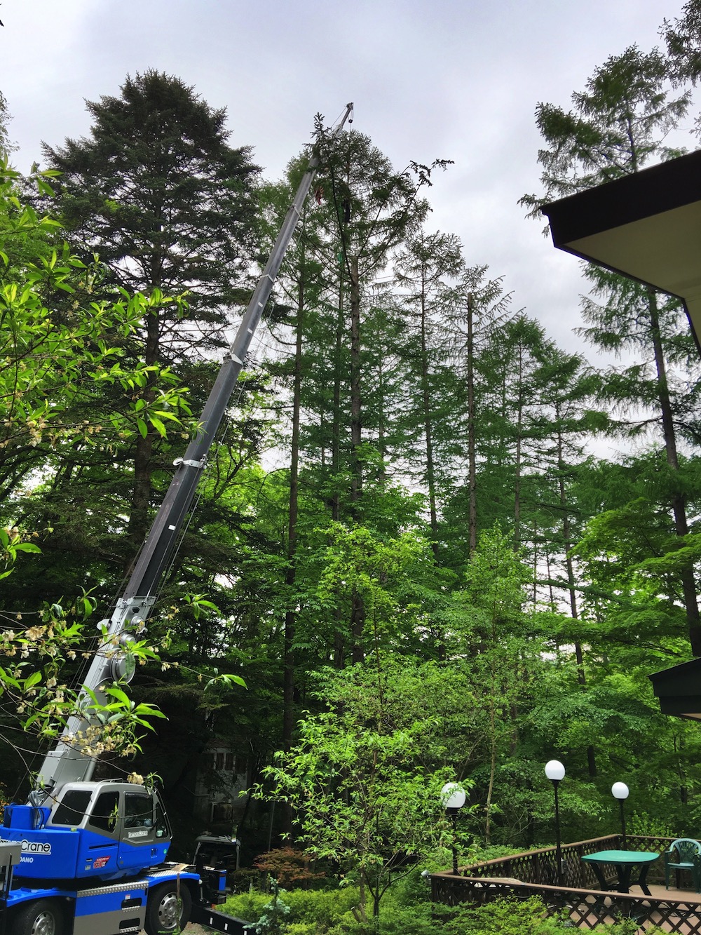 クレーンを使用した伐採